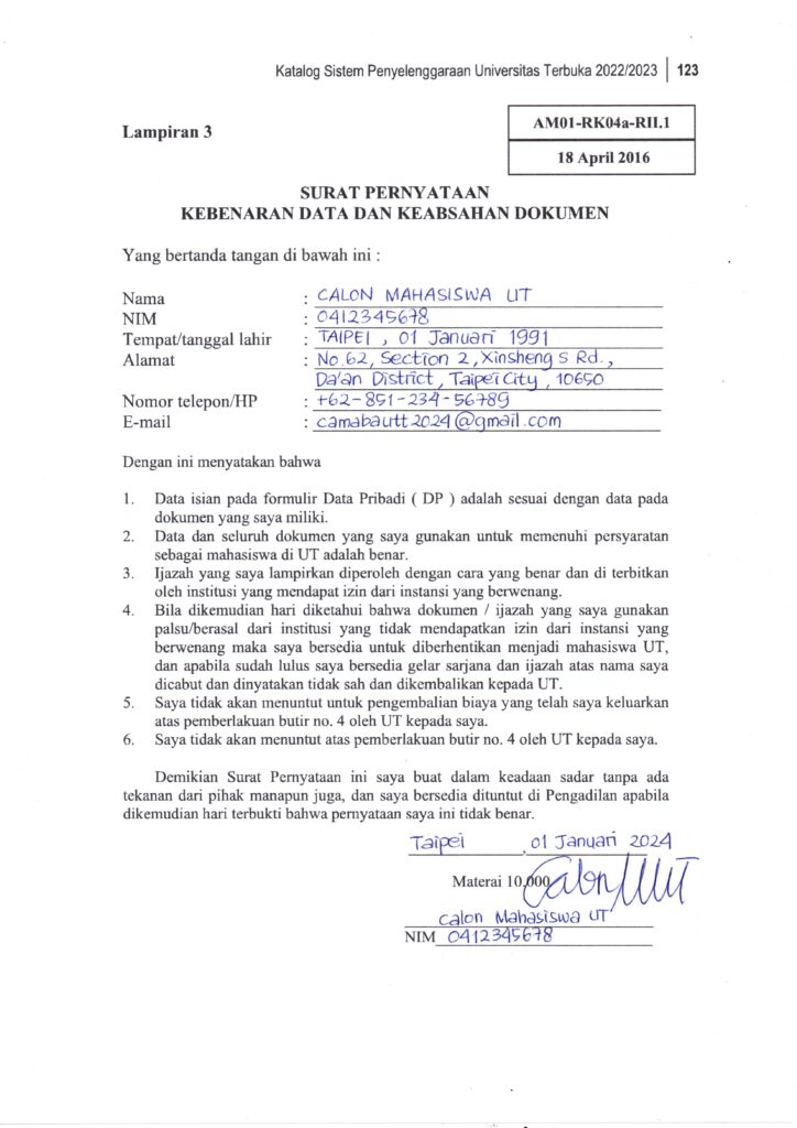 Mengisi semua data dan persyaratan di Sistem Informasi Akademik (SIA) UT dokumen panduan.